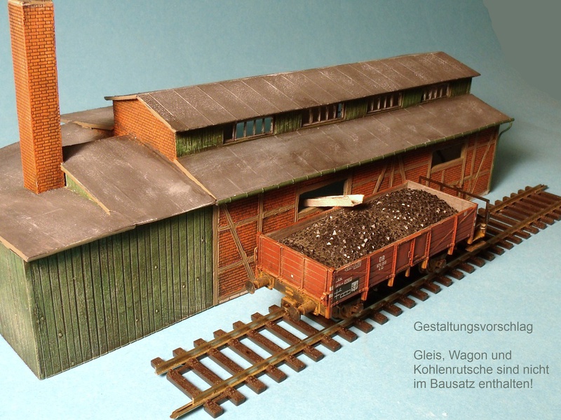 Modell einer kleinen Kohlenhandlung wie sie früher in Stadt und Land praktisch an jeder Ecke zu finden war. Für einen eigenen Gleisanschluss zu klein (hier bietet sich der Bausatz Art.1-23 an), erfolgte die Abholung der Kohlen am Bahnhof durch den firmeneigenen Pferdewagen oder Kleinlaster, der auch für die Auslieferung an den Kunden verwendet wurde. Typische Standorte waren die Hinterhöfe, hier ist lediglich auf eine geeignete Zufahrt zu achten.