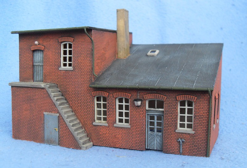 Hier handelt es sich nicht mehr um einen Handwerksbetrieb, sondern schon um eine kleine Fabrik. Die produzierten Waren können durchaus überregionale Bedeutung erlangen, sofern sie eine bestimmte Größe nicht überschreiten. Ganze Autos werden hier sicher nicht hergestellt, ein Zulieferbetrieb ist aber durchaus möglich. Es ist heute kaum noch vorstellbar, was früher in solchen kleinen Fabriken alles produziert wurde: vom Hosenknopf über Blechspielzeug bis zur Dampfwäscherei etc. sind der Phantasie keine Grenzen gesetzt. Der Einsatz dieses Modells ist nicht nur auf den Hinterhof beschränkt, auch in Bahnhofsnähe oder im Gewerbegebiet ist es ein attraktiver Blickfang.