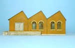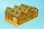 Durch ihre markante Dachform ist die Sheddachhalle zum Symbol einer typischen Fabrik geworden. Die Oberlichter und die großen Fenster sorgen für eine optimale Tageslichtausbeute. Mehrere Modelle hinter- und/oder nebeneinander ergeben einen beliebig großen Fabrikkomplex. In Kombination mit Art. 1-57 "Werkhalle" entsteht ein abwechslungsreiches Areal (die letzten Fotos zeigt ein Anwendungsbeispiel zusammen mit Art. 1-57).