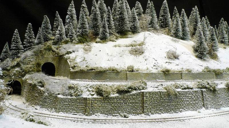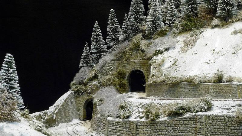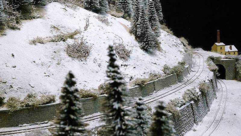 Klirrende Kälte beherrscht das Land. Über Nacht hat es kräftig geschneit, doch bald kommt der Schienenpflug und räumt die Strecke wieder frei. Bis dahin herrscht Stille über dem Höhenzug, doch es dauert nicht mehr lag bis der erste Zug aus einem der Tunnels kommend ins Tal donnert und alles in dicke Rauchschwaden hüllt. Kurz darauf ist der Spuk vorbei und die Ruhe kehrt zurück.